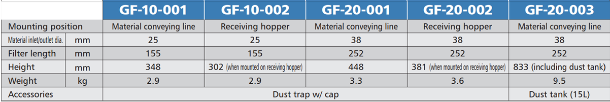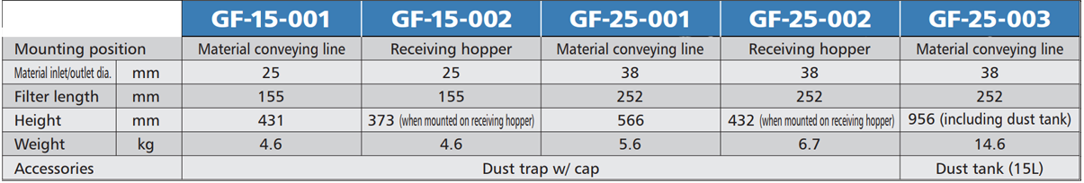 ●GF-25-002 không thể được khớp nối với một phễu hút nhựa có Φ160mm。 ●Bấm để phóng to thông số kỹ thuật。 |