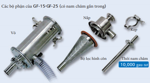Cấu tạo đơn giản của GF cho phép dễ dàng tháo rời, vệ sinh hay bảo trì trong khi nam châm gắn trong cũng được bao bọc và bảo vệ bởi một ống bọc bằng thép SUS để ngăn ngừa tình trạng hao mòn gây ra bởi nguyên liệu。