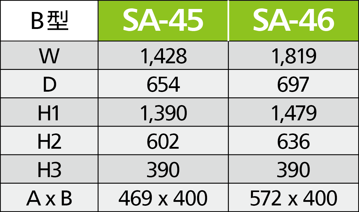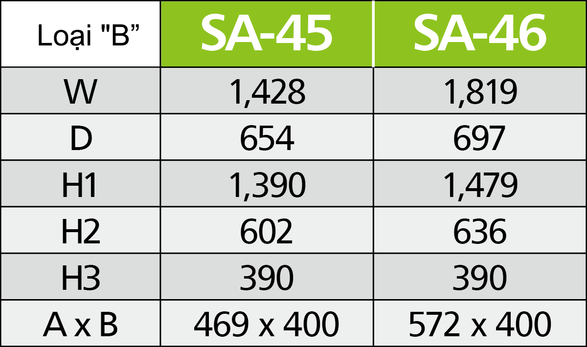●Bản vẽ phác thảo là một sự đơn giản hóa, và tỷ lệ, hình dạng, thiết bị, vv của mỗi phần có thể khác nhau tùy thuộc vào mô hình ●Phễu có thể được chọn từ loại A hoặc loại B.。 ●Đơn vị: mm ●Nhấn vào hình để phóng to thông số kỹ thuật。 |